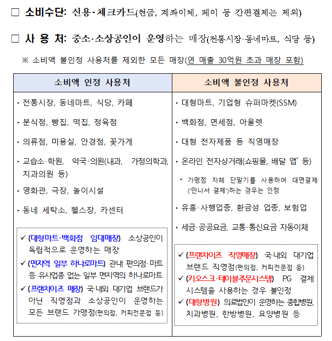 - 주의: 편의점·커피전문점 등 대기업 직영 매장, 키오스크/PG 결제, 대형병원 등은 불인정될 수 있음.
